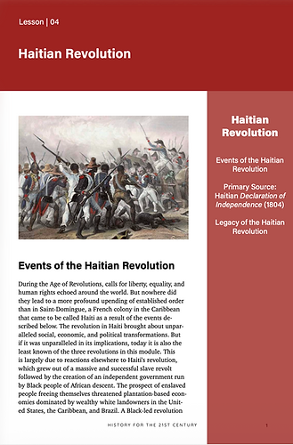 Currently H/21 has produced an exemplary series of peer-reviewed and peer-tested modules revolving around key themes in world history, including: